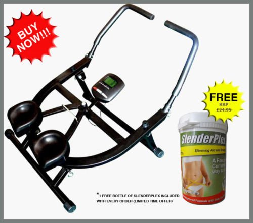 The Ab Sculpt pro is the World's No1 Ab and Cardiovascular workout! Ab Sculpt pro is the most recent in abdominal exercisers that everyone is talking about: The Ab Sculpt pro helps you get leaner and tighter abs, faster, without any inconvenience in the comfort of your own home. Ab Sculpt is unequalled compared to contrasting similar products. It corrects all the old faults. No plastic, Ab Sculpt pro is exclusively crafted of steel for longevity and a smoother ride. The sculpt pro's knee pads are wider, more comfortable and more supportive whereas contrasting models are less advanced. In just minutes, and with uncomplicated exercises, you will have impressive results. Do not waste time, it is no longer compulsory to go to the gym to work your abs and your cardio. You integrate both in one simple workout. Ab Sculpt pro enables simultaneous work and impact. On a treadmill, you would be running 20 minutes to do what just 3 minutes of the Ab Sculpt pro does. Ab Sculpt pro ; unlike other conventional machines, operates several body parts simultaneously: abdominal muscles, hips, buttocks and legs are all used. So, you use more muscles, burn more calories, and eliminate excess fat in a shorter space of time than ever before.http://youtu.be/BRkdLG-TSKgOne bottle of SlenderPlex free with each Ab Sculpt also available from Dosho Fitness MRP £24.95. All natural dietary slimming aid and energy boost.